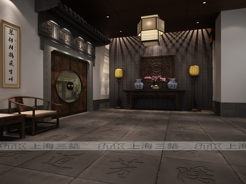 本案例在设计师的精心刻画下,以传统的中式元素为底蕴,再利用现代生活中人们欣赏视觉改变的创新风格为代表,结合了古雅的木质结构和色彩浓郁的传统格调,重新诠释了茶艺文化在茶楼这种休闲空间内的新体验,让我们在现代生活中能够体会到古典雅意的生活态度。运用和谐统一的表达模式来诠释茶道的灵韵和最新品格。