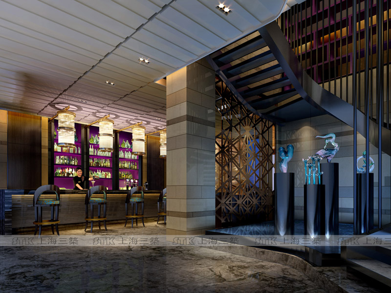 充满意趣的空间划分,曲面与折面的相互交融,不同材质间的对比在精致的灯光氛围中创造了一个别样的休闲生活空间。