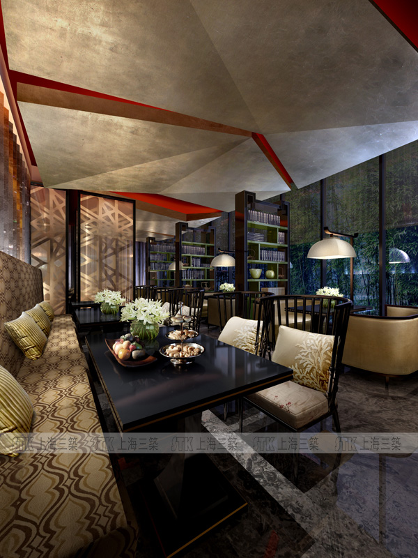 充满意趣的空间划分,曲面与折面的相互交融,不同材质间的对比在精致的灯光氛围中创造了一个别样的休闲生活空间。
